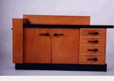 number 373 J. Den Drijver buffet c. 1925 oak and painted laminate 69” wide x 19 1/4” deep x 40” high Netherlands