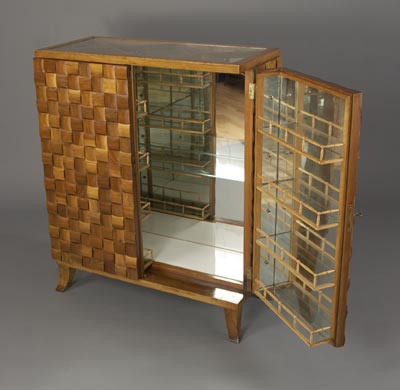 626 Paolo Buffa bar 1930 solid walnut plugs, inside railings original maple, original glass 31 1/4” wide x 14” deep x 38 1/4” high Italy