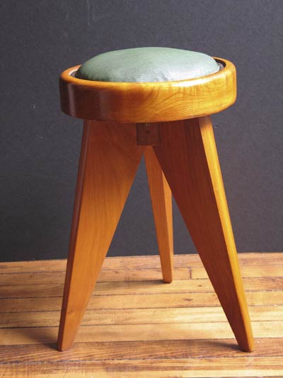 number 605 Andre Sornay stool 1950s mahogany and leather 17” high (15” high to seat) France