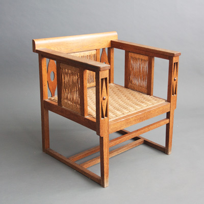 394 unknown pair of armchairs c.1910 oak and rope 26 3/4" height, 24 1/4" wide, 20 1/2" deep, 13 1/4" seat France