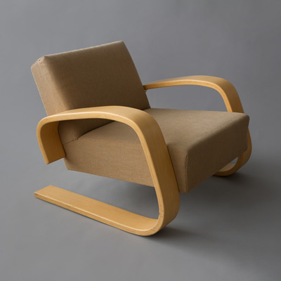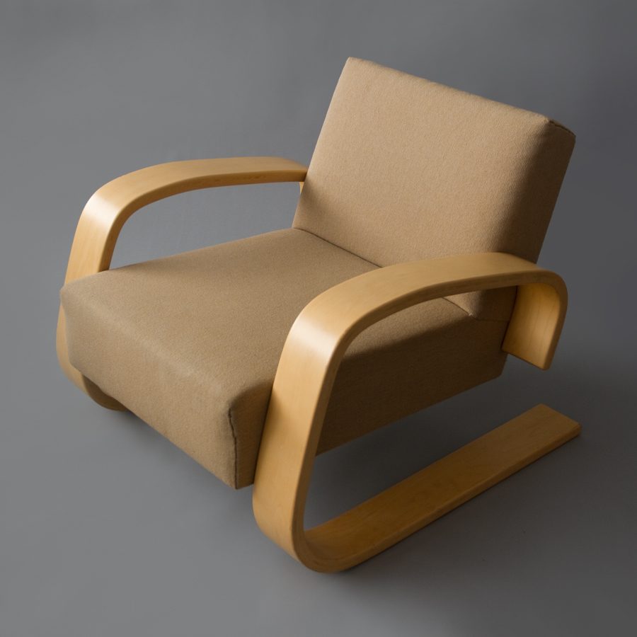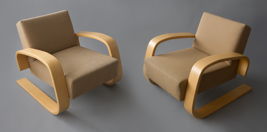 number 697 Alvar Aalto for Artek Tank lounge armchairs model 37/400, pair c.1936/1996 Nordic birch plywood 30" wide x 31 1/2" deep x 26" high Finland