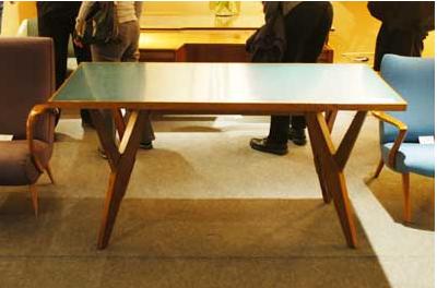 number 568 Carlo Mollino table 1952-3 oak and green laminate 62 7/8” wide x 31 3/8” deep x 31 1/2” high Italy
