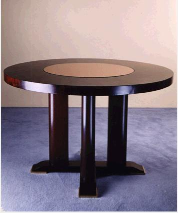 number 460 Jules Leleu circular table c. 1935 mahogany, bronze, glass 43 1/2” diameter x 28 1/4” high France