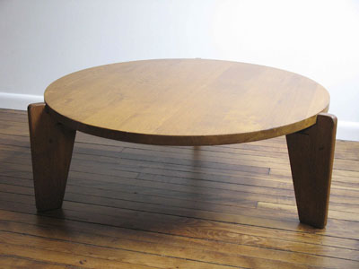 number 603 Jean Prouvé low table c. 1950 oak and metal 37 1/2” diameter x 14” high France