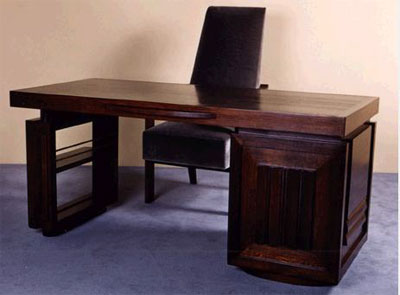 number 404 Charles Dudouyt desk and chair 1945 oak size: 64 3/4” wide x 30 3/4” deep x 29 3/4” high France