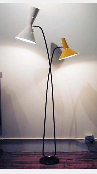 number 569 Anonymous lamp 1950s metal, yellow and white shade 63” high France
