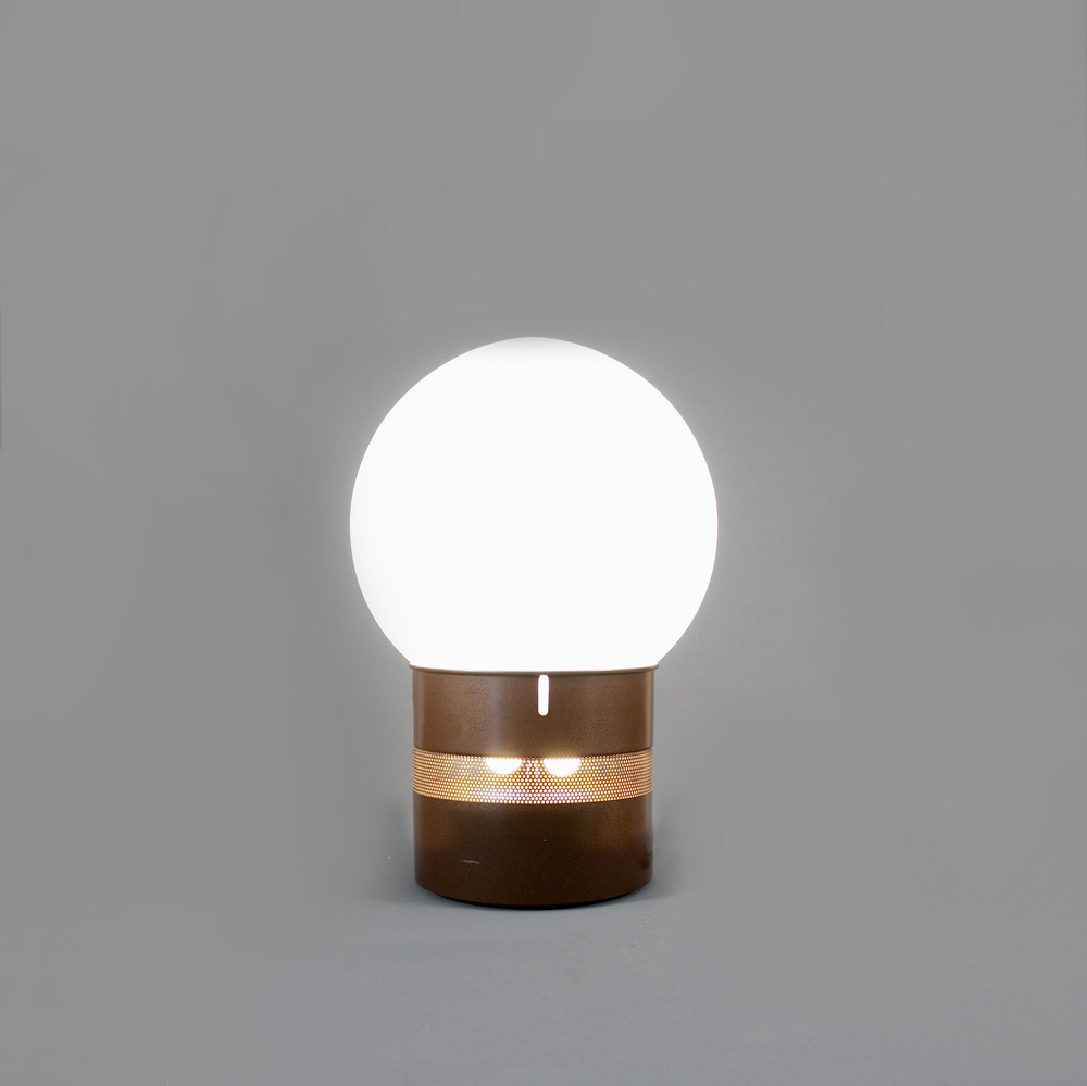 number 665 Gae Aulenti for Artemide "Mezzoracolo" light 1968 white glass and metal 27" high Italy