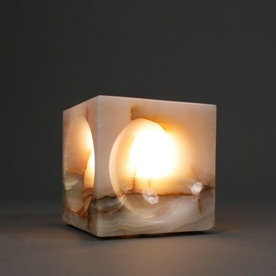 655 Angelo Mangiarotti for Iter Elettronica table light c. 1972 alabaster 7" square Italy