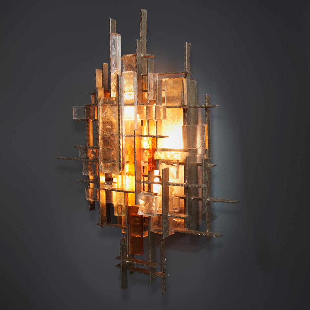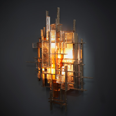 number 681 Poliarte-Verona wall light c.1970 glass and metal 30 3/4" height, 22" wide, 6 3/4" deep Italy