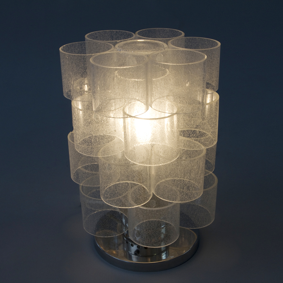 Table lamp in blown crystal with stand in polished stainless steel.