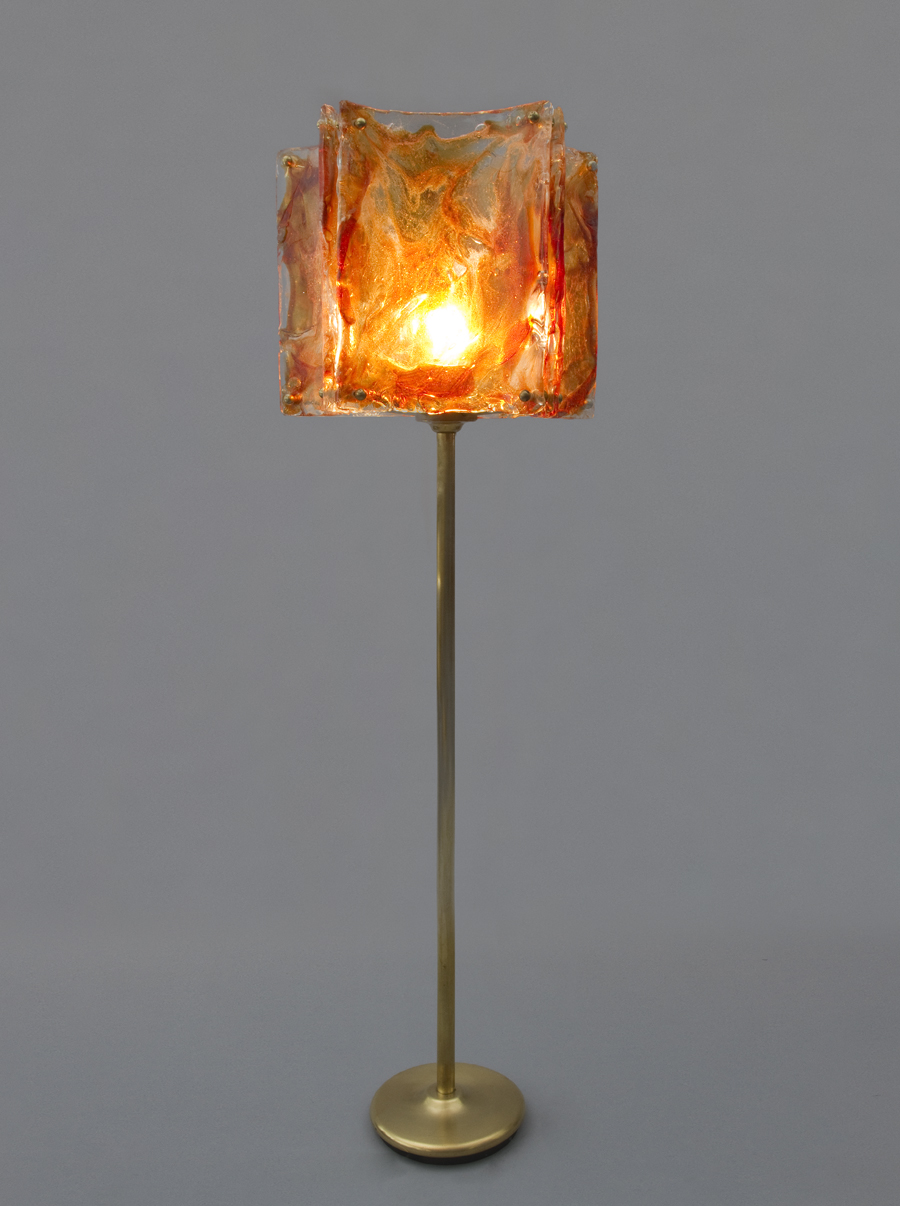 number 2009 Poliarte Lampada da terra c. 1972 Floor lamp with raw crystal and base in satin stainless steel 58 3/4” high x 18 1/2” wide Verona, Italia