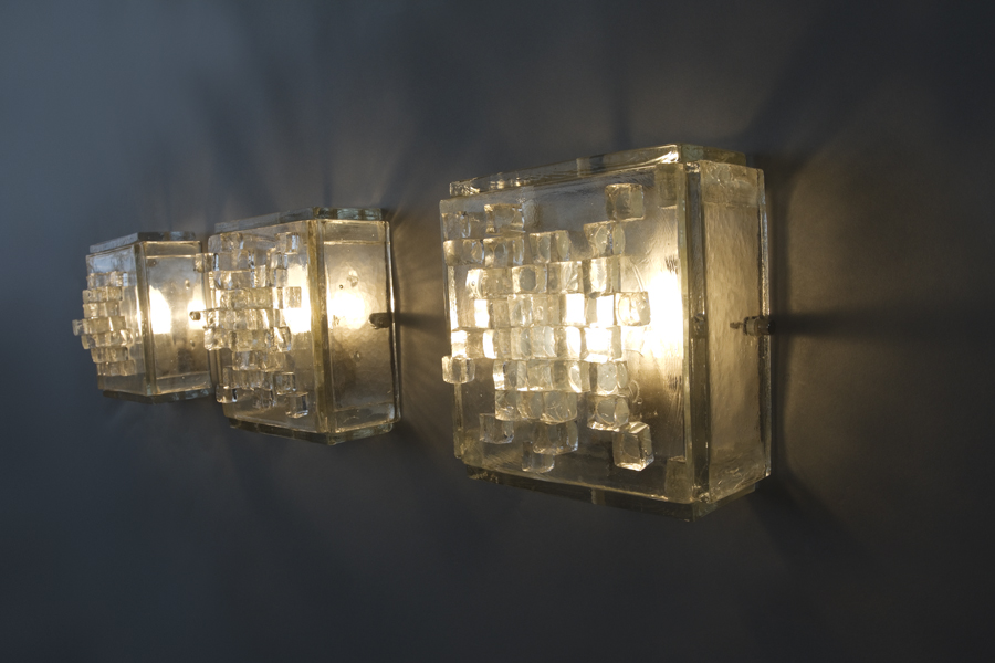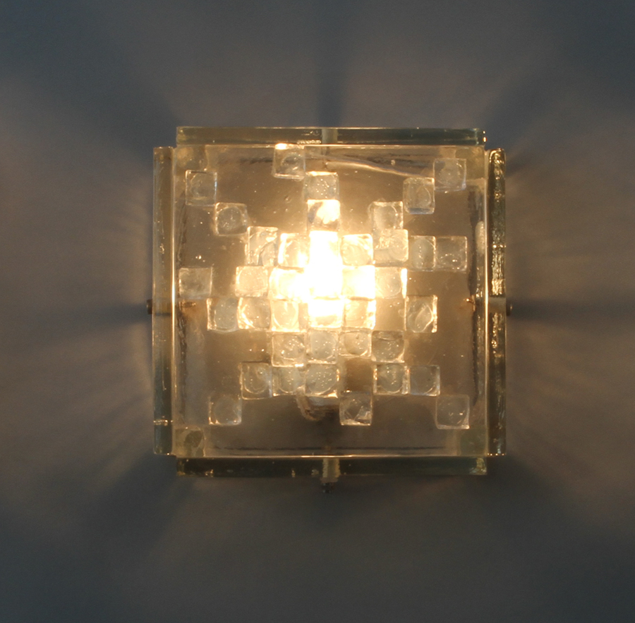 number 2017 Poliarte Apis Wall light in raw crystal with support in satin stainless steel. 9” high x 9” wide x 5” deep Verona, Italia c.1970