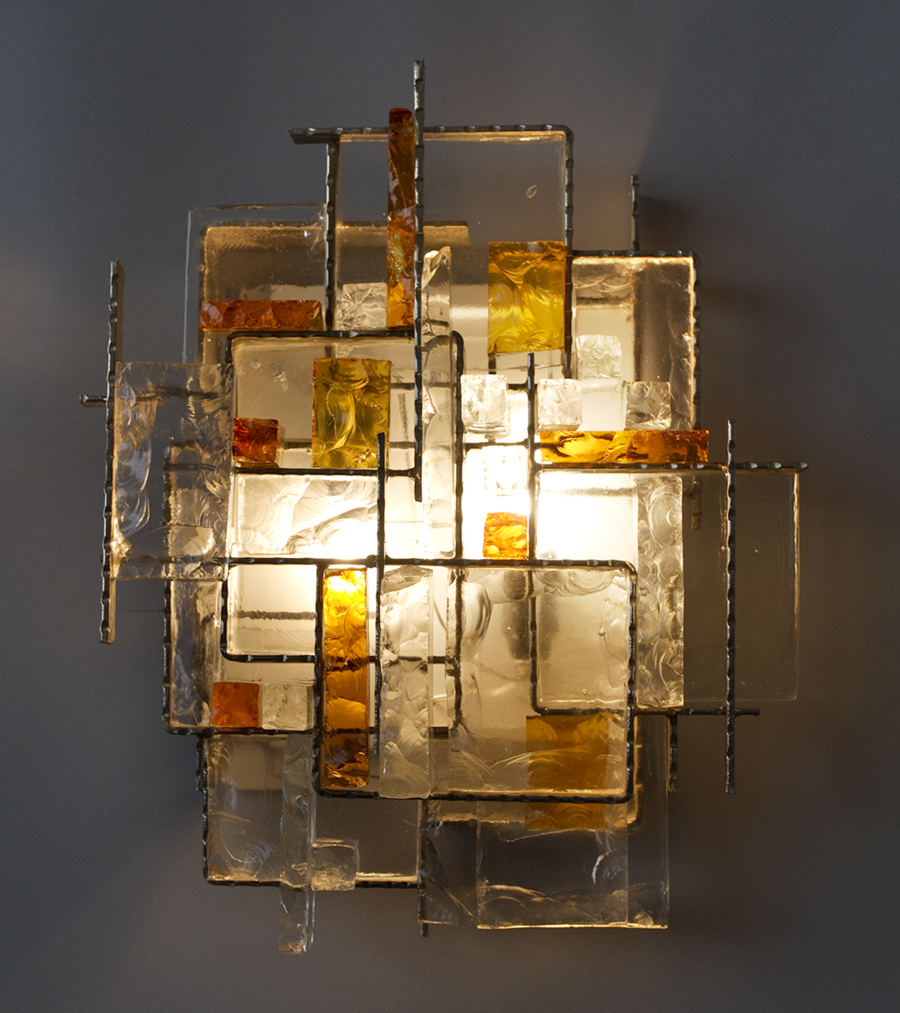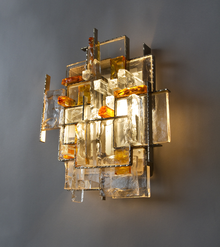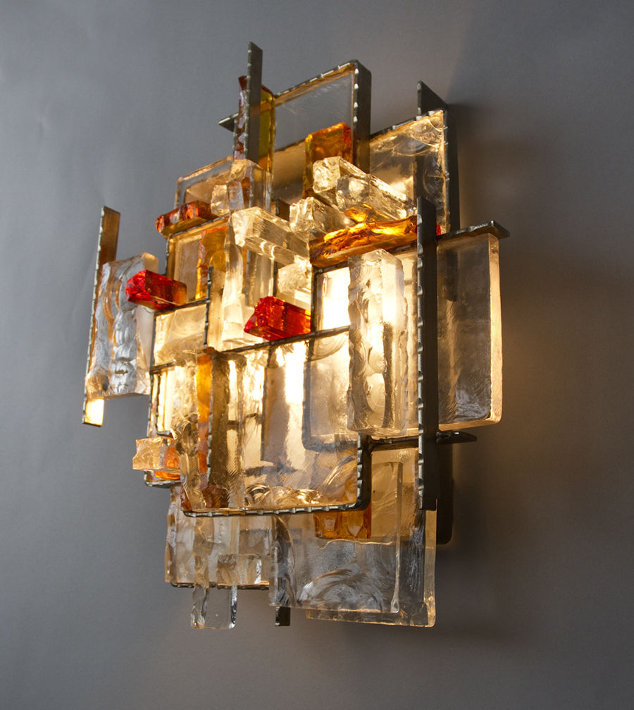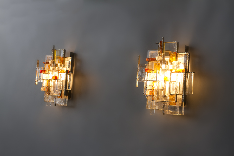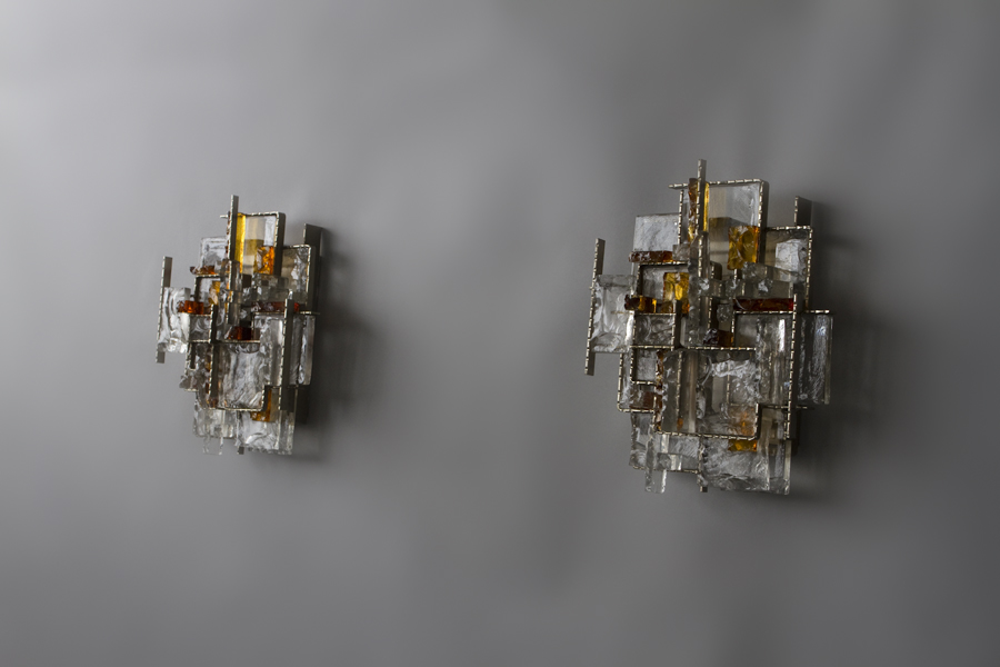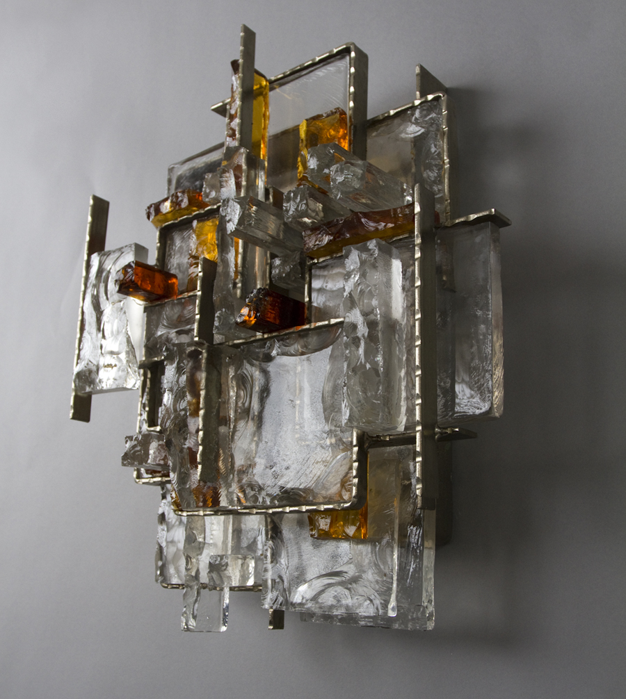 number 690 Poliarte-Verona pair of sconces c.1970 Murano glass and metal 15 1/2" high x 13 1/2" wide x 5" deep Italy