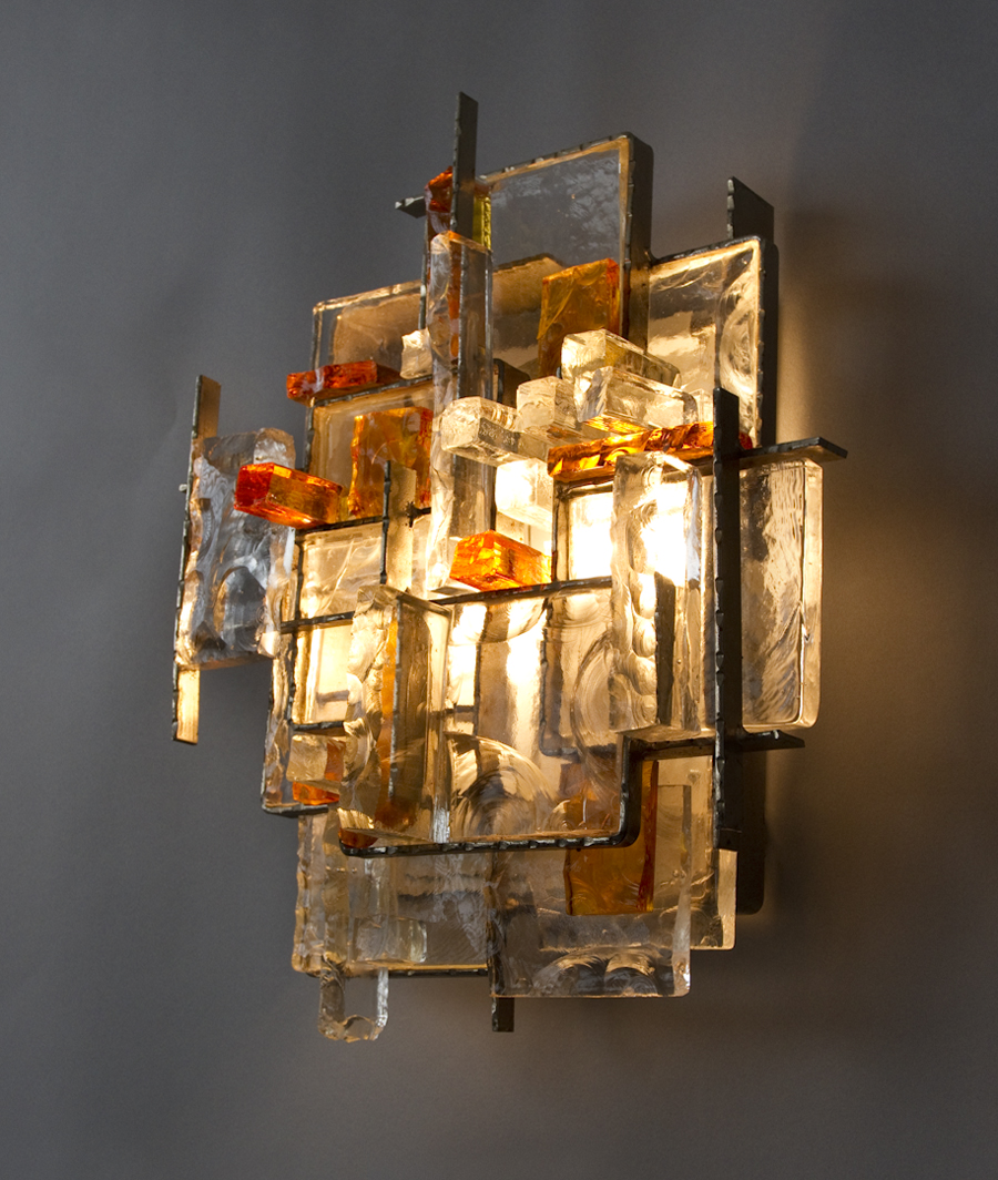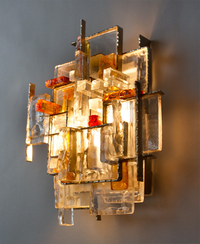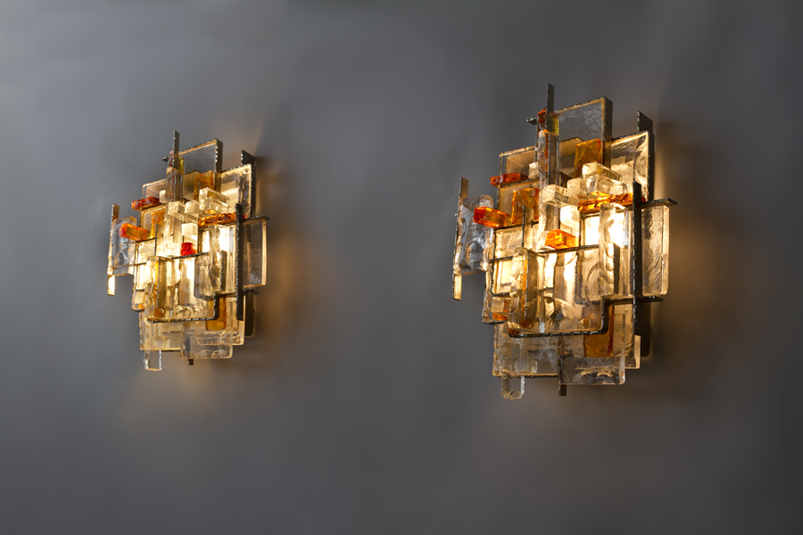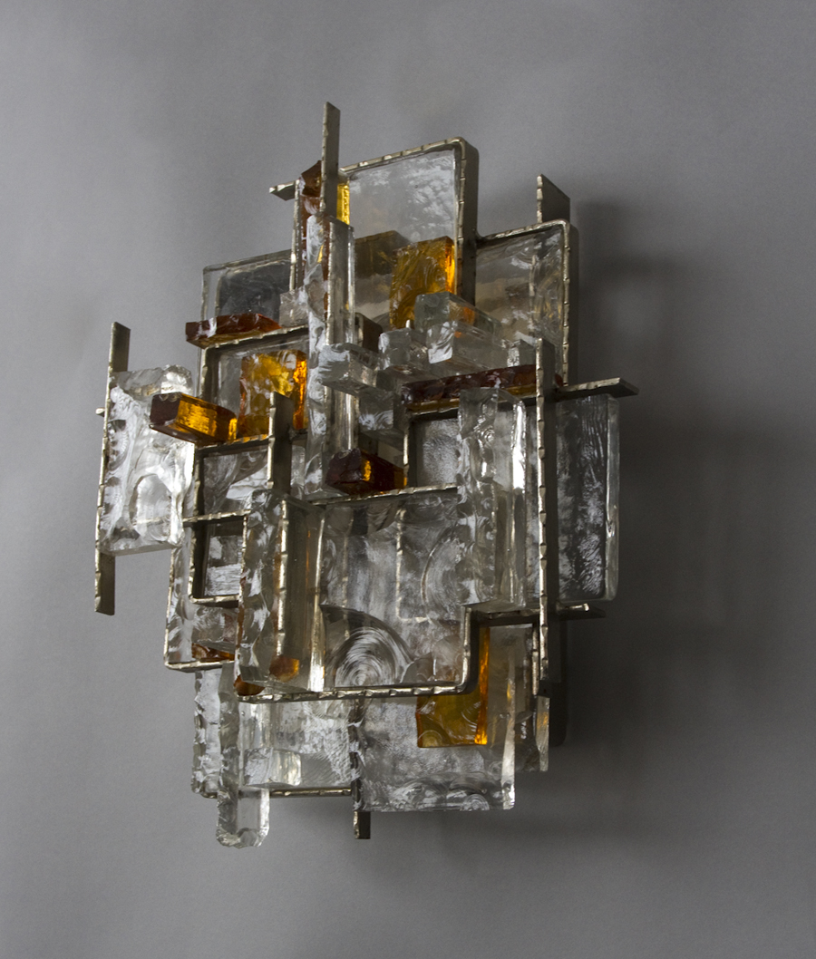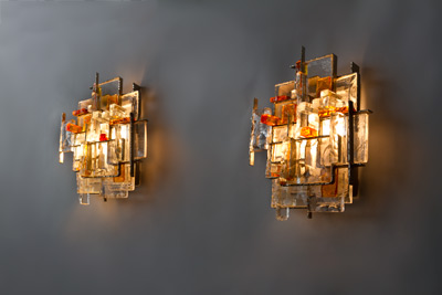 number 691 Poliarte-Verona pair of sconces c.1970 Murano glass and metal 15 1/2" high x 13 1/2" wide x 5" deep Italy