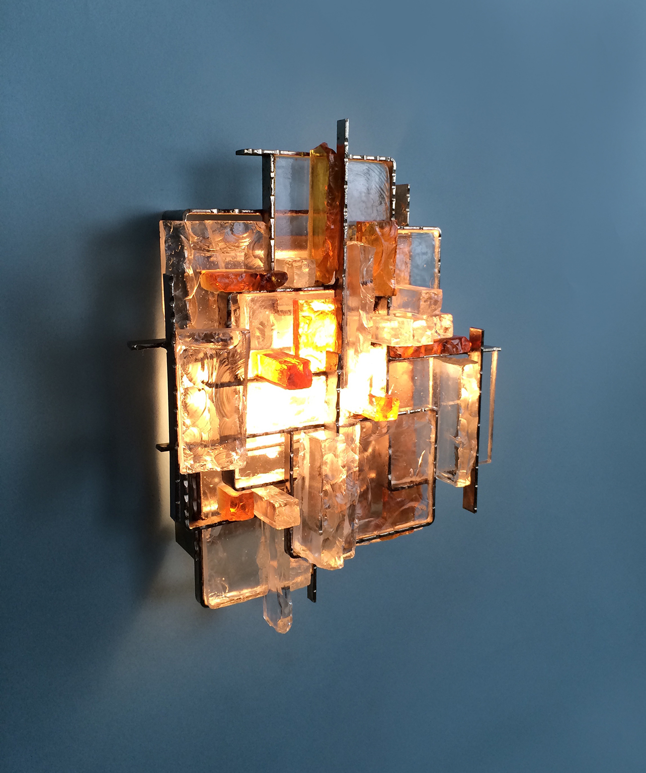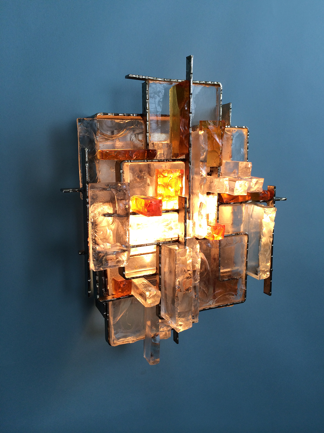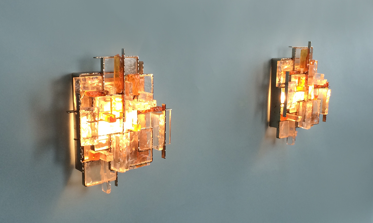 710 Poliarte pair of sconces c.1968 iron and raw crystal 15.5" high x 13.5" wide x 5" deep Italy