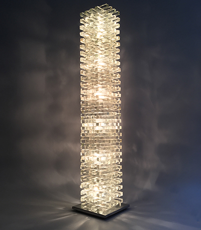 inventory: 730 Poliarte "Idra “ standing light c.1972 Cast clear glass and metal base 9.84” wide x 9.84” deep x 49.25” high Italy