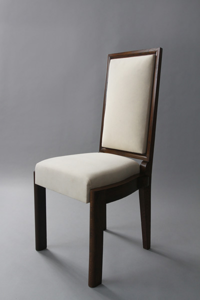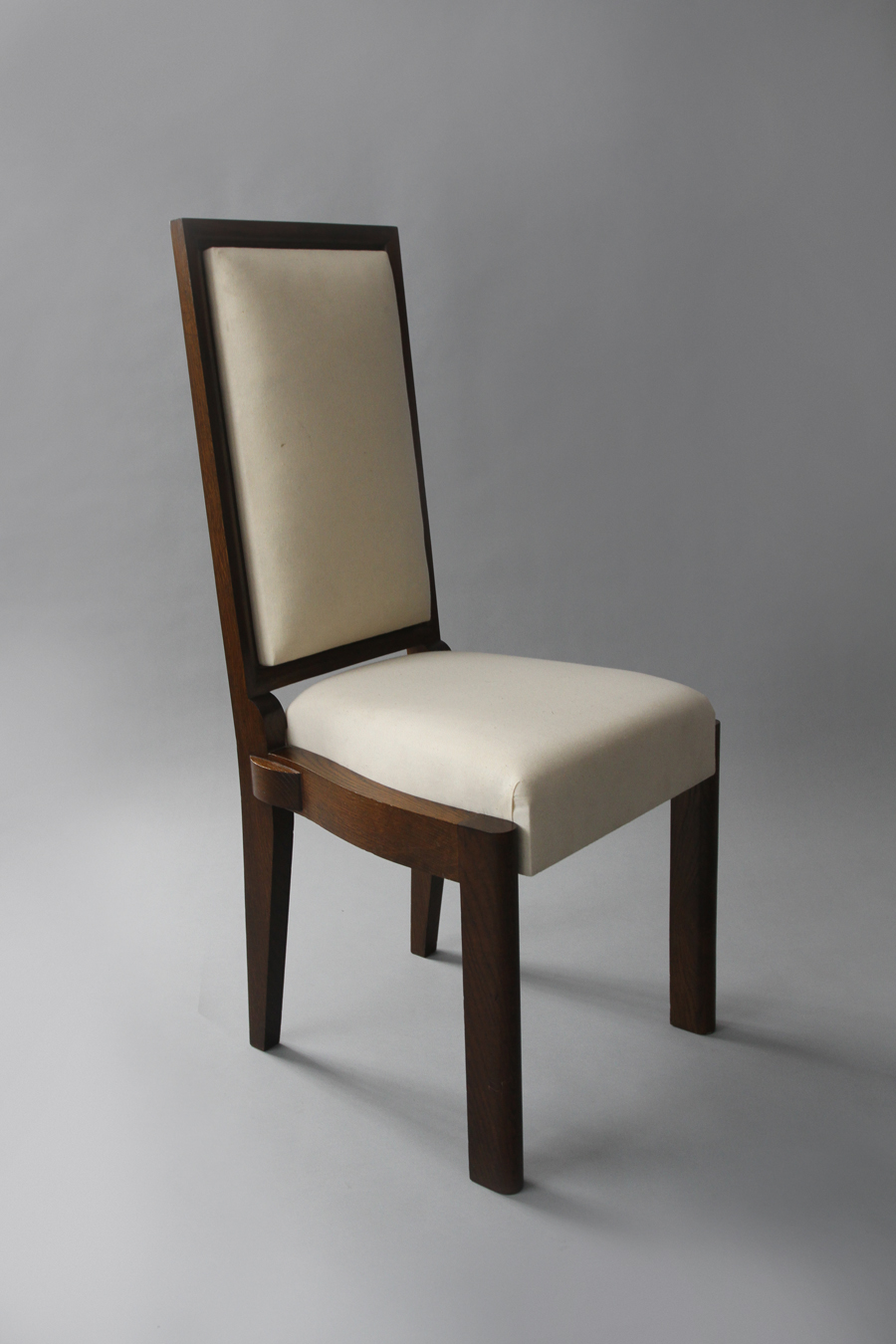 number 508 Charles Dudouyt eight dining chairs 1947 oak 18 1/2” wide x 19” deep x 42” high back (18 1/2” high seat) France