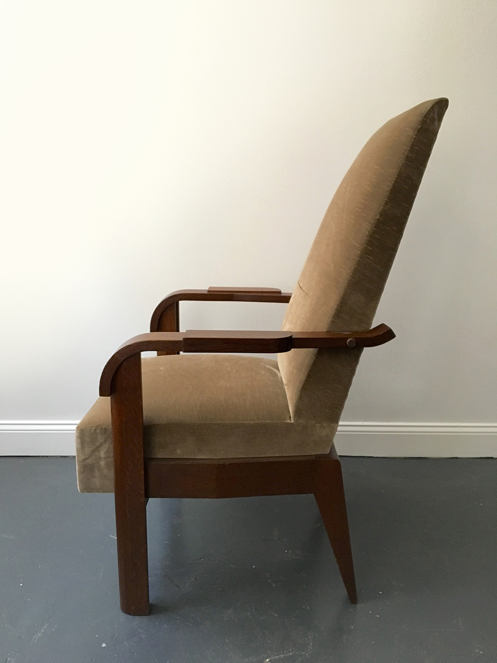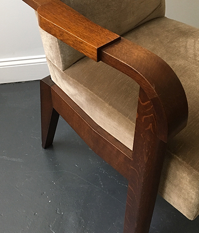 719 Charles Dudouyt armchair 1940 oak Height 46.5" x width 26" x depth 28.5" x seat height 19" France