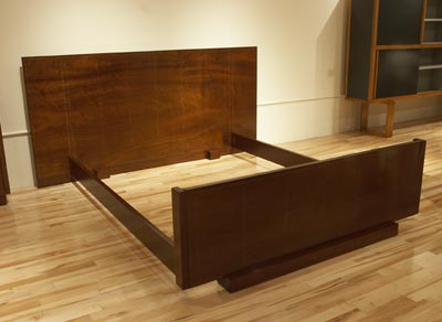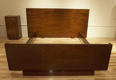 number 600 Andre Sornay bed c.1930’s rosewood, mahogany and bronze inlay 79 1/4” wide x 81” deep France