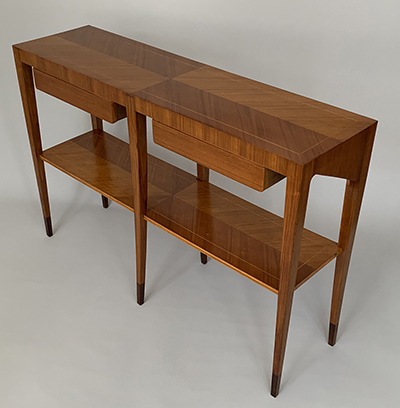 743 Gio Ponti manufactured by Giordano Chiesa Console c.1955 Italian walnut and mahogany 33.5” h x 51.25” w x 14” d Italy