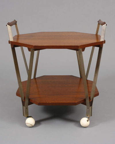 number 659 Ico Parisi for Stildomus trolley 1959 teak, metal and white rubber 24" diameter x 21" high Italy