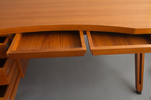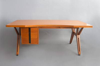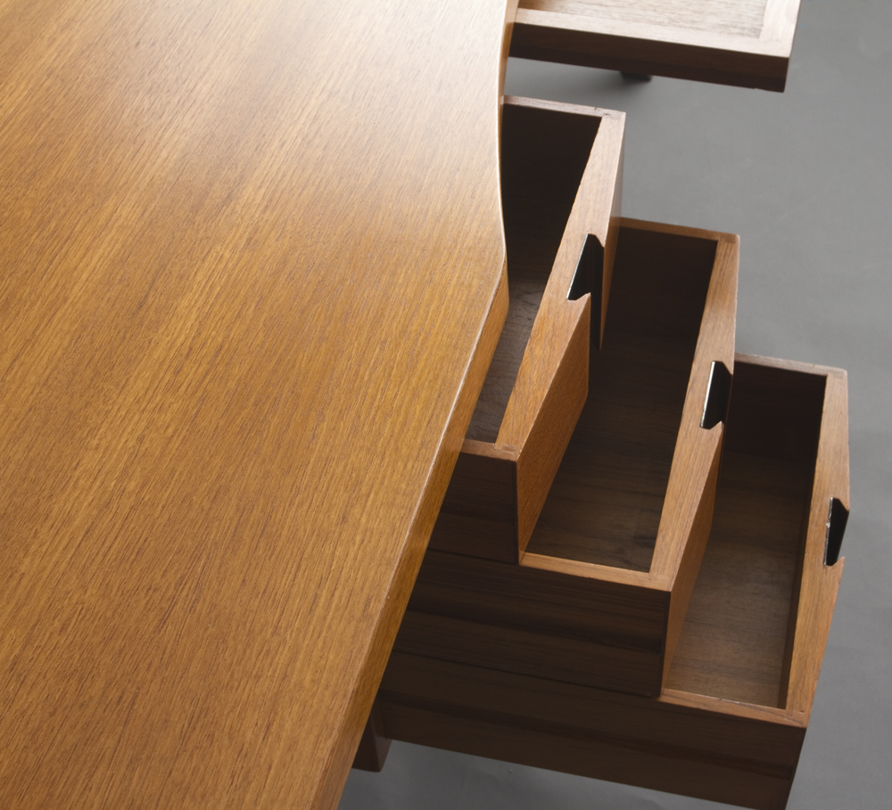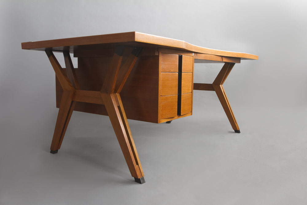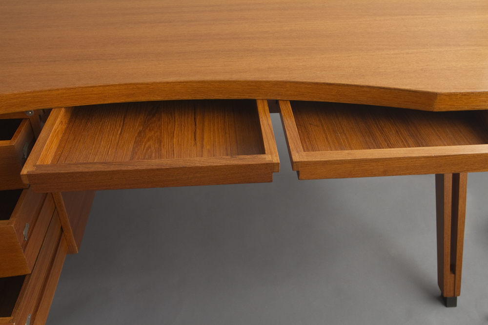 687 Ico Parisi for M.I.M. desk c.1960 teak and black metal 28 1/2" high x 70 3/4" wide x 38 1/4" deep Italy