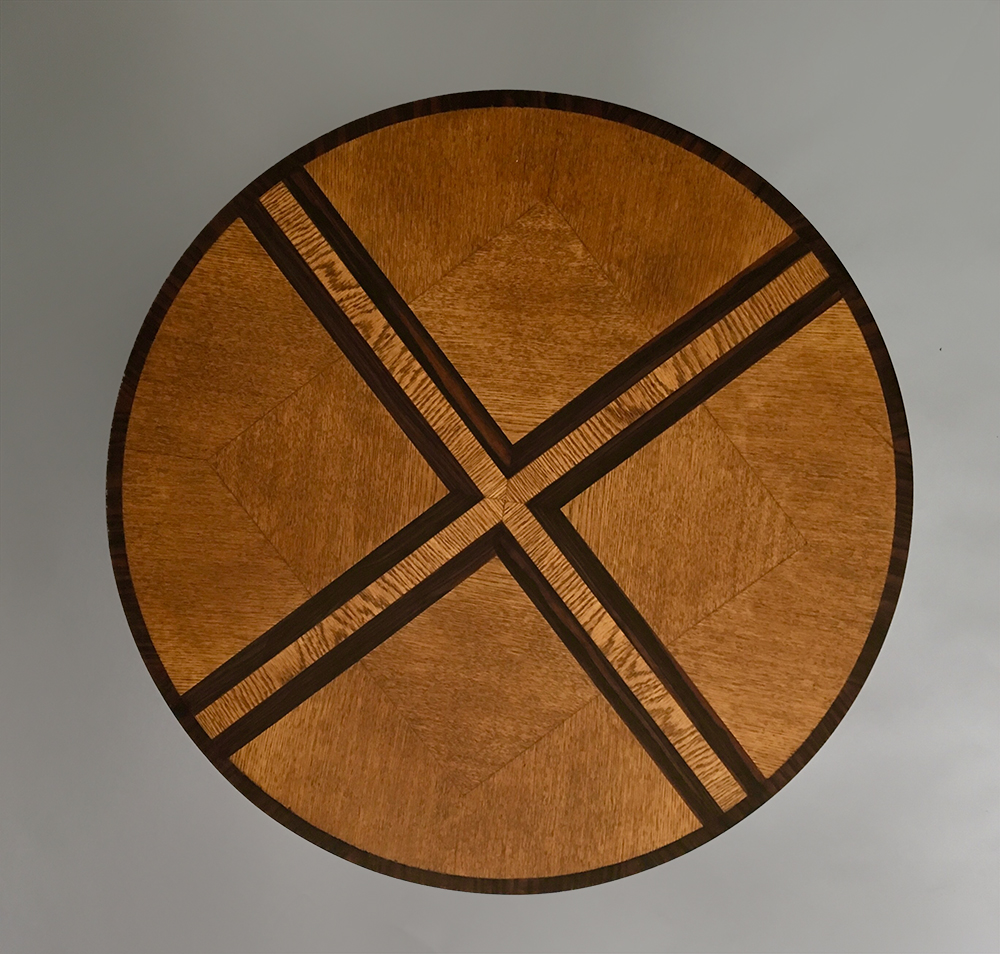 number 723 Piet Izeren . Manufactured by De Genneper Molen low table ( model 325) 1932 oak and ebony Macassar 24" h x 27.5" diam. Netherlands