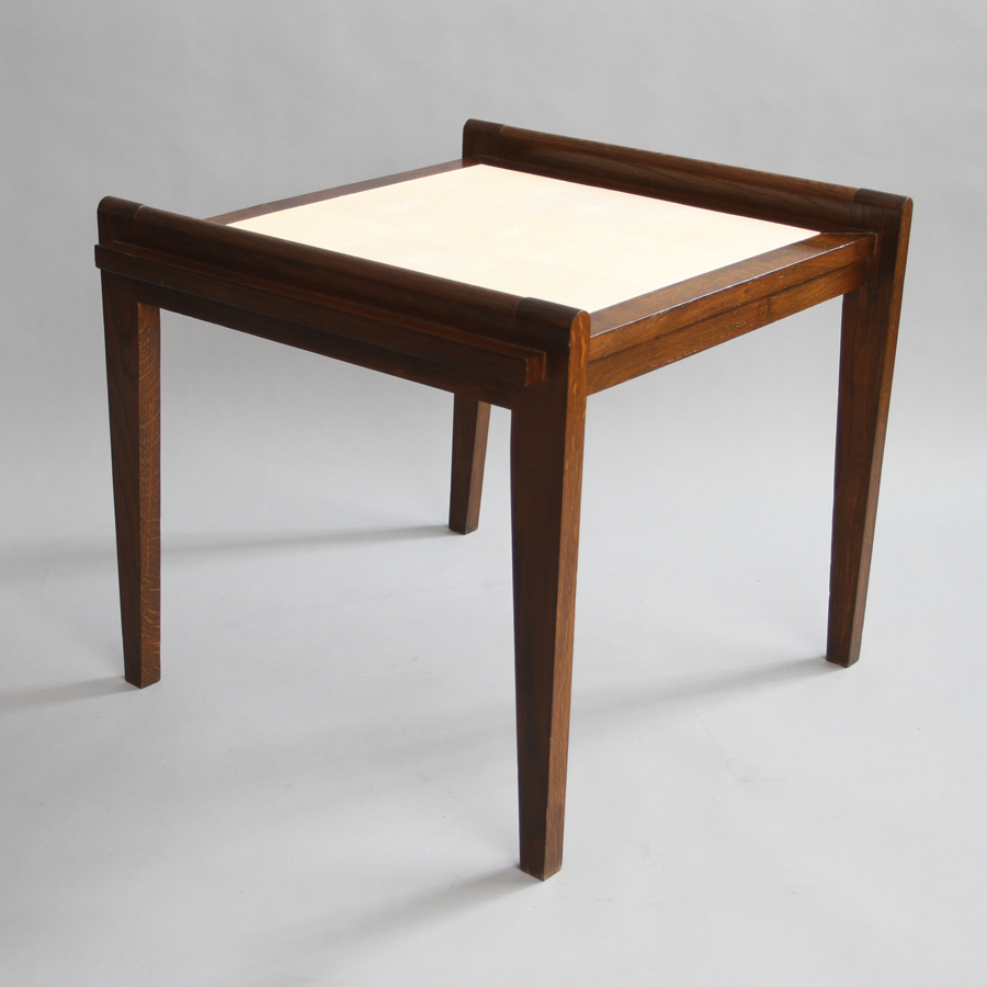 number 457 René Gabriel low table 1947 oak with glass inset 25 1/2” wide x 23” deep x 21” high France