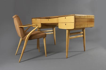 257 Guglielmo Ulrich Desk and chair early 1940's Italian Walnut 26" wide x 55" deep x 31 1/4" high Italy
